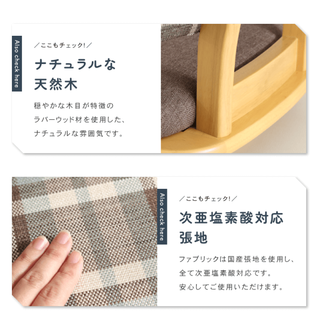 | 材質 | 木部:ラバーウッド 張地:ファブリック(布) 塗装:ウレタン |