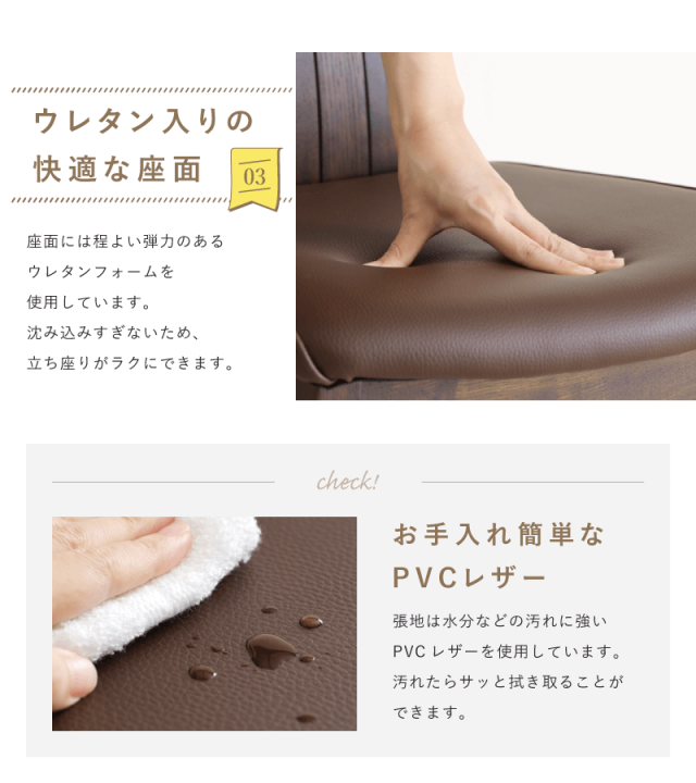 | 材質 | 木部:タモ / 張地:PVC(合皮) / 塗装:ウレタン |
