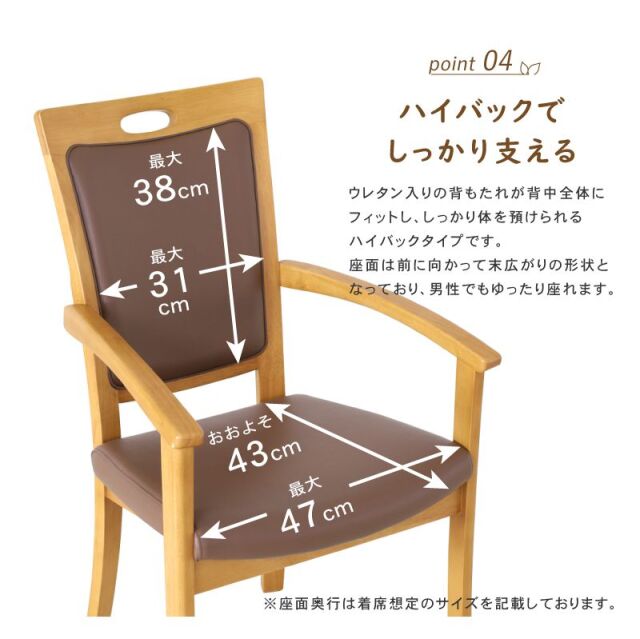 お届けも早った~ 先日 介護認定で市役所の方がいらっしゃった時 テーブルの椅子からの立ち上がりで テーブルの淵を掴んで立ち上がっていて、その都度 テーブルが移動して危険を指摘されました それで椅子の見直しを検討し 色々調べてこの椅子を見つけました 母は膝が悪いので 畳や床に座れず ダイニングチェアが居場所の全てです 先程 母に届けたら 肘掛けの先端を掴みスムーズな立ち上がりに びっくりしました 丸みのある 肘掛けも 腕に沿って楽だって言ってました 椅子が全ての母には 背もたれも肝心で 背に沿って高めの背もたれは 気持ちよさそうでした 色々探した甲斐がありました 大川の家具にえらい信頼のある母は そこも安心だったみたいです 因みに私の婚礼家具は大川で買ってくれてました 長々なり失礼しました 大事に使わせて頂きます |