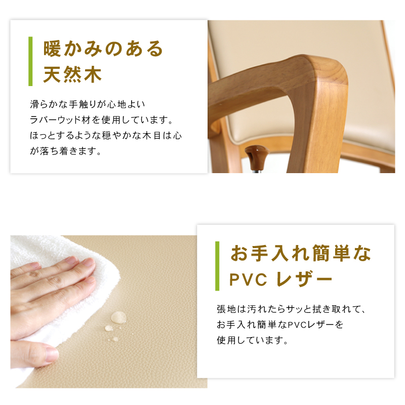 | 材質 | 木部: ラバーウッド 張地: PVC(合皮) 塗装: アミノアルキド |