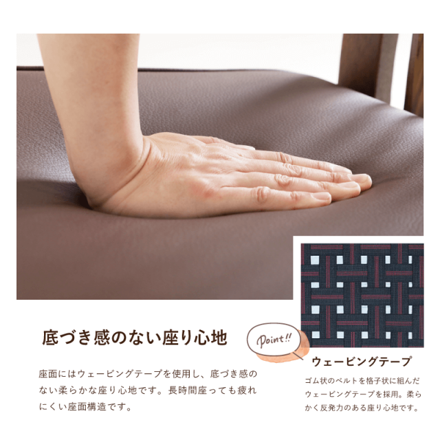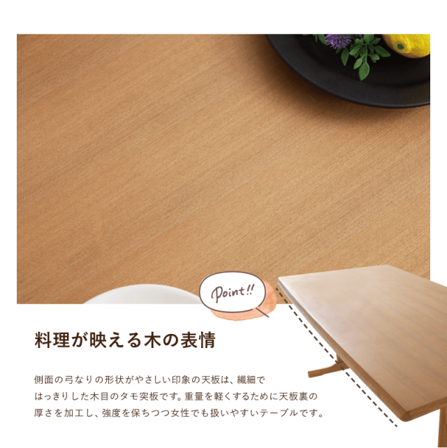| 材質 | ≪ テーブル ≫ 天板:タモ突板 , 脚:タモ材 / 塗装:ウレタン ≪ チェア ≫ 木部:タモ材 / 張地:PVC(合成皮革) / 塗装:ウレタン |
