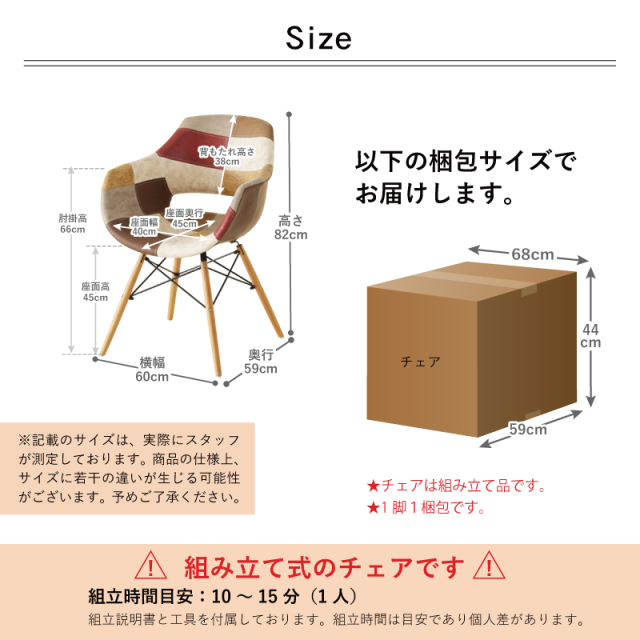 | サイズ | 幅60×奥行59×高さ82cm(座面高45cm/肘高66cm) |