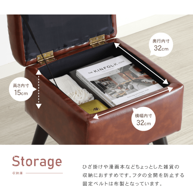 | サイズ | 幅40×奥行40×高さ45cm(座面高45cm) 収納部:幅32×奥行32×高さ15cm |
