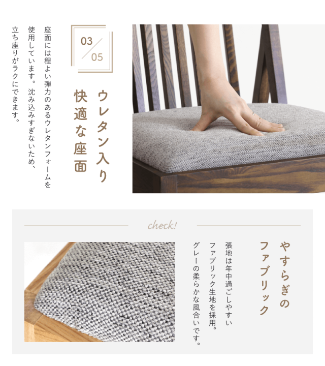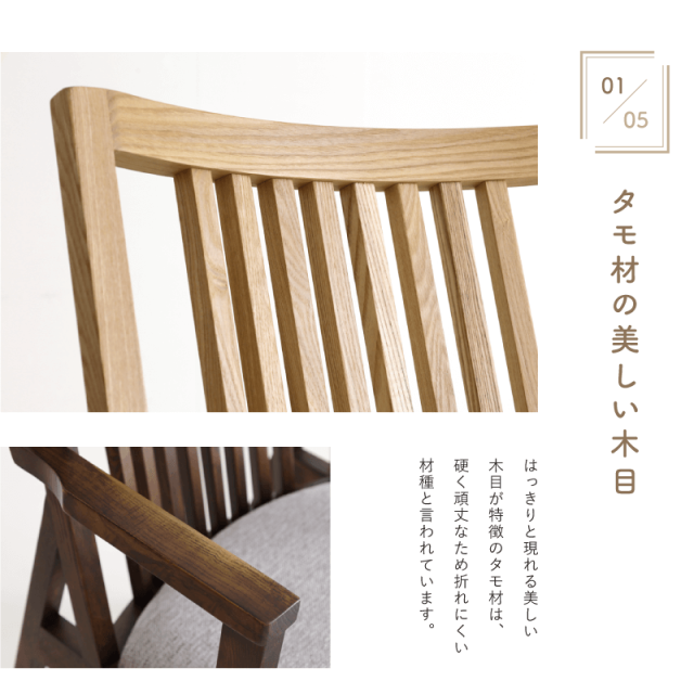 | 材質 | 木部:タモ / 張地:ファブリック(布) / 塗装:ウレタン |