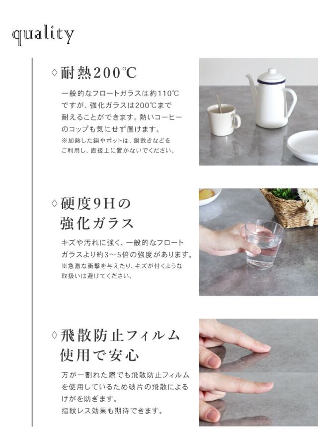 | 材質 | 天板:ガラス,脚部:天然木/塗装:ウレタン |