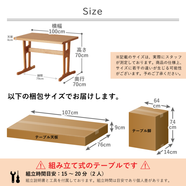 | 備考 | お客様組立て 3梱包(天板・テーブル脚・チェア)でお届けします ※木目や色目、節等の商品により天然木特有の個体差がございます。 ※モニター環境により、発色・素材感に差異が生じる場合がございます。ご不安な方は無料サンプルにて見本をご確認ください。 |