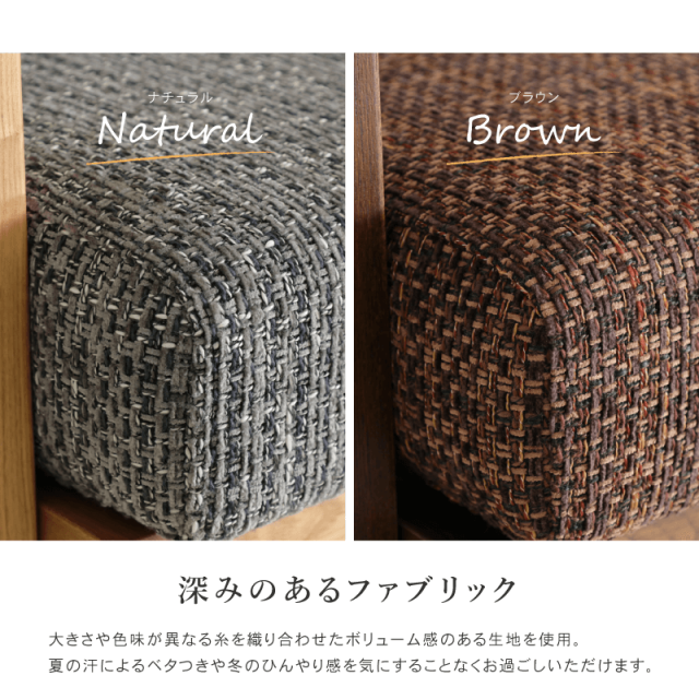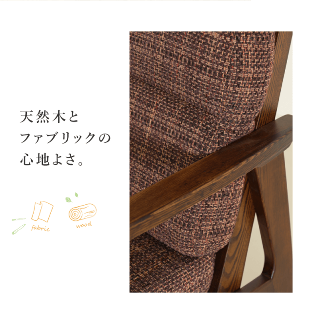 | 材質 | 木部:タモ材 / 張地:ファブリック(布) / 塗装:ウレタン |