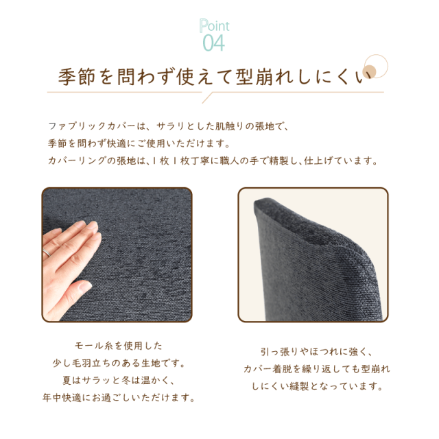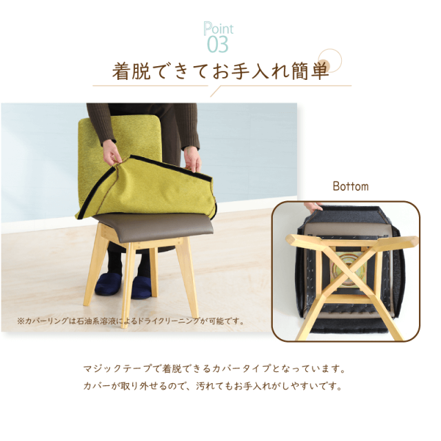 | 材質 | 木部:ラバーウッド/カバー:ファブリック(布)/塗装:ウレタン |