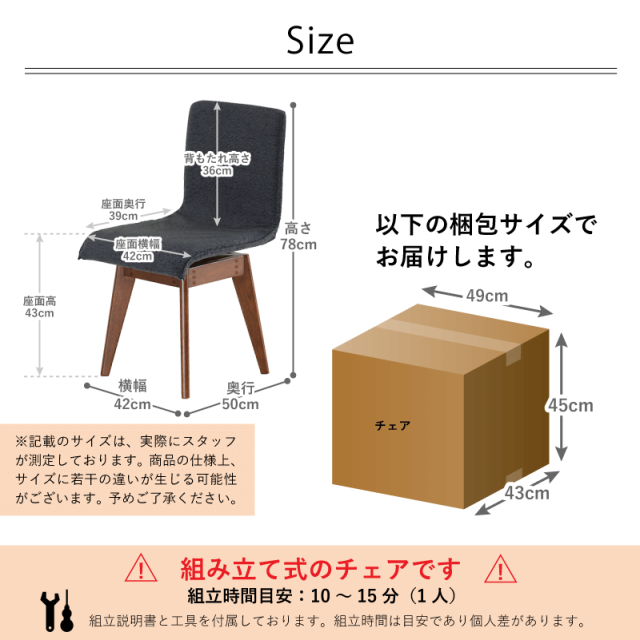| サイズ | 幅42×奥行50×高さ78cm(座面高43cm) |