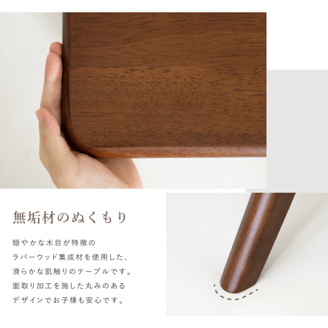 | 材質 | 天板:ラバーウッド , 脚:ラバーウッド / 塗装:ウレタン |