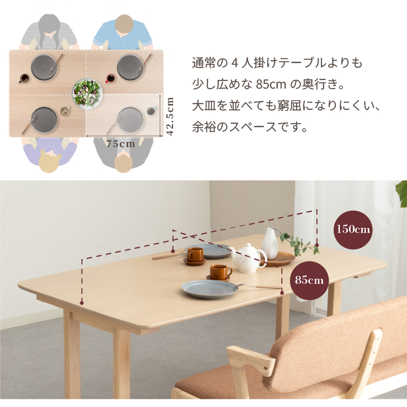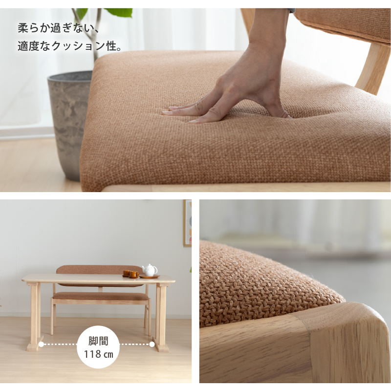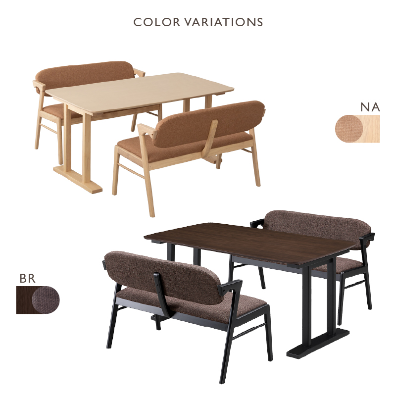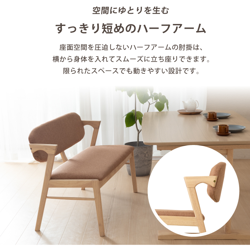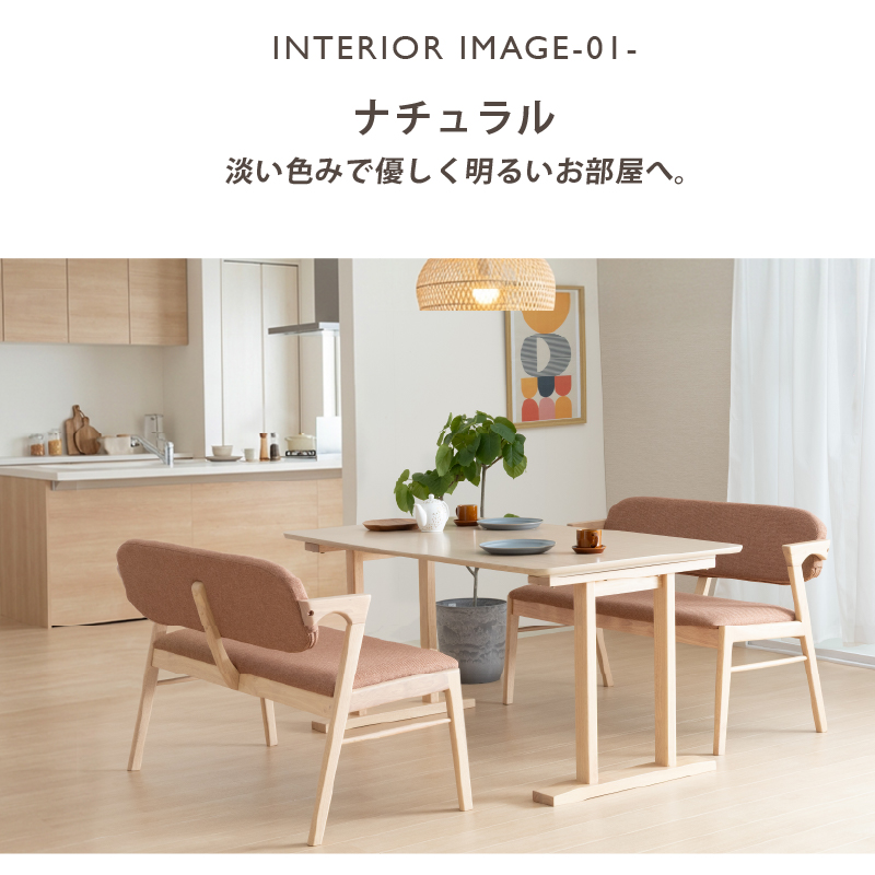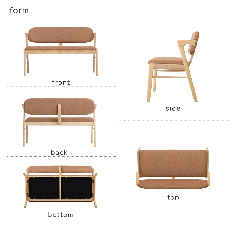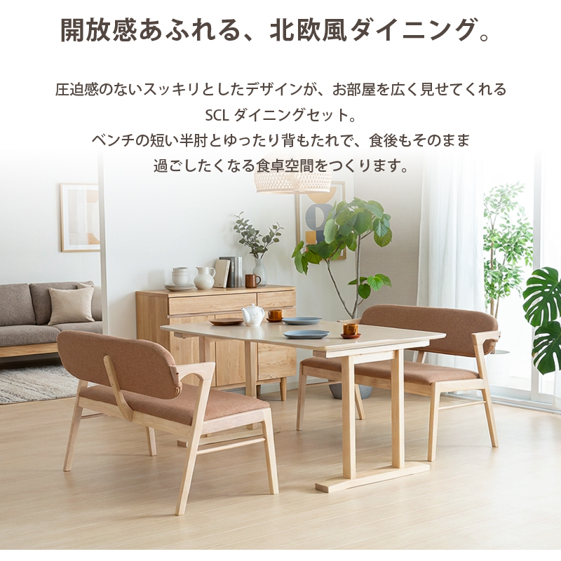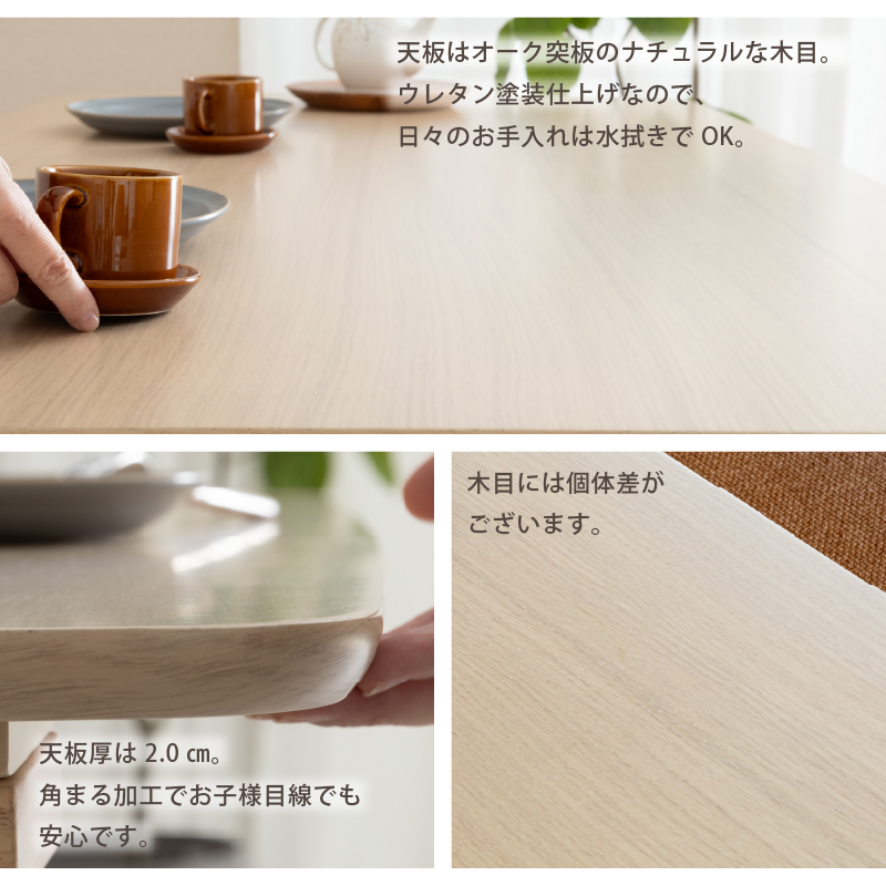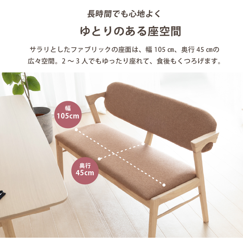 | 材質 | ≪ テーブル ≫ 天板: オーク突板 脚部: ラバーウッド材 塗装: ウレタン ≪ ベンチ ≫ 木部: ラバーウッド材 張地: ファブリック(布) 塗装: ウレタン |
