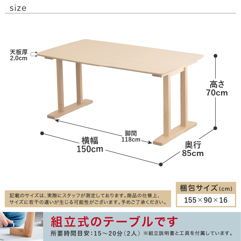 お客様組立て 3梱包(テーブル・ベンチ×2)でお届けします ※当商品は業務販売品の為、在庫確認後納期をお知らせします ※ご注文のタイミングによっては在庫欠品および完売の可能性がございます ※当商品は業務販売商品の為、初期不良以外は保証対象外となっております ※天然目の特性による返品・交換はお受けできません ※当商品は業務販売商品の為、木板・張地サンプルのご用意が出来ません ※モニター環境により、発色・素材感に差異が生じる場合がございます |