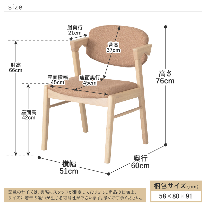 | サイズ | 幅51×奥行60×高さ76cm(座面高42cm/肘高66cm) |