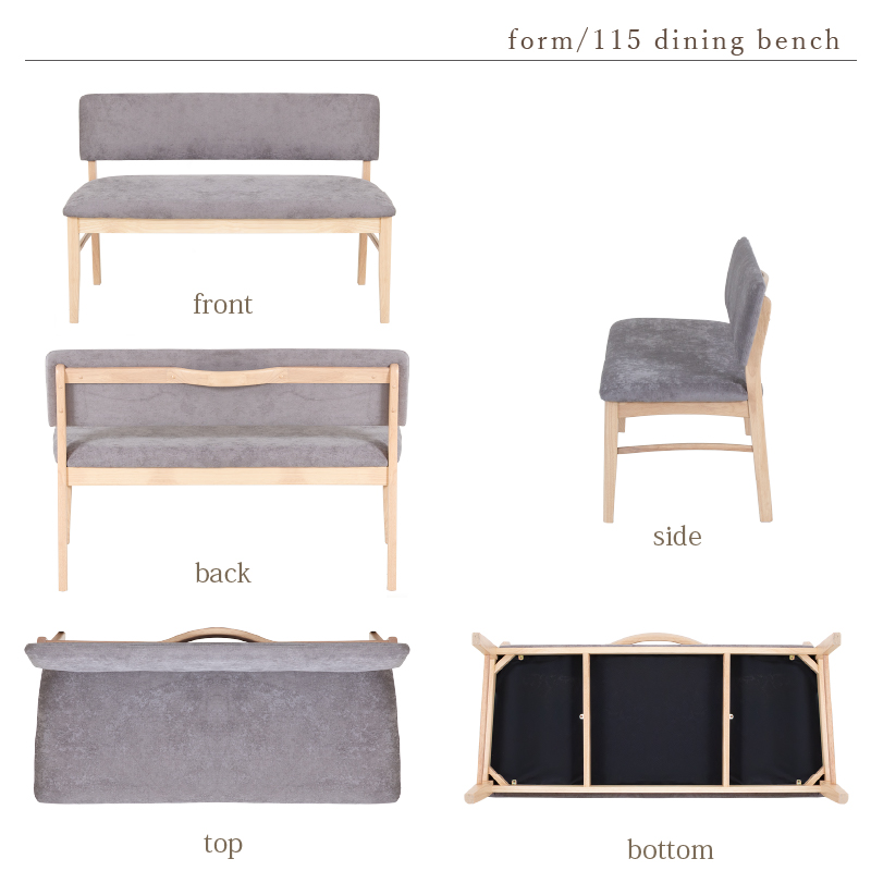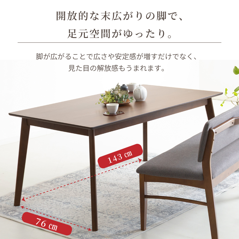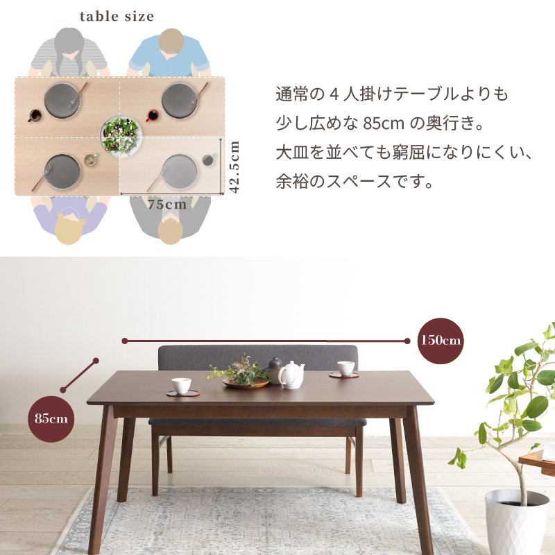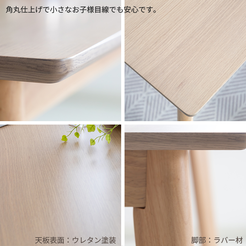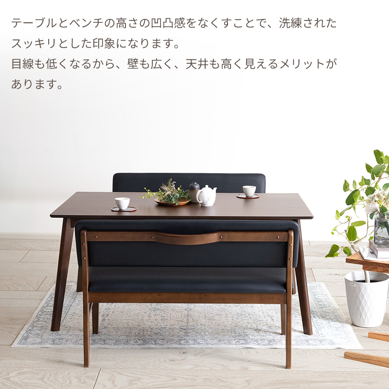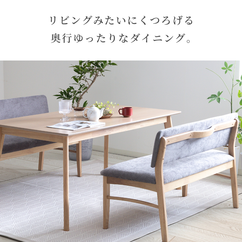 | 材質 | ≪ テーブル ≫ 天板:オーク突板 , ウォールナット突板 脚部:ラバーウッド 塗装:ウレタン塗装 ≪ ベンチソファ ≫ 木部:ラバーウッド 張地:合皮 , ファブリック 塗装:ウレタン塗装 |