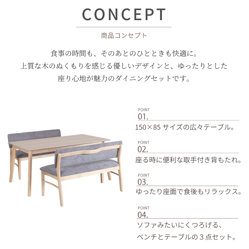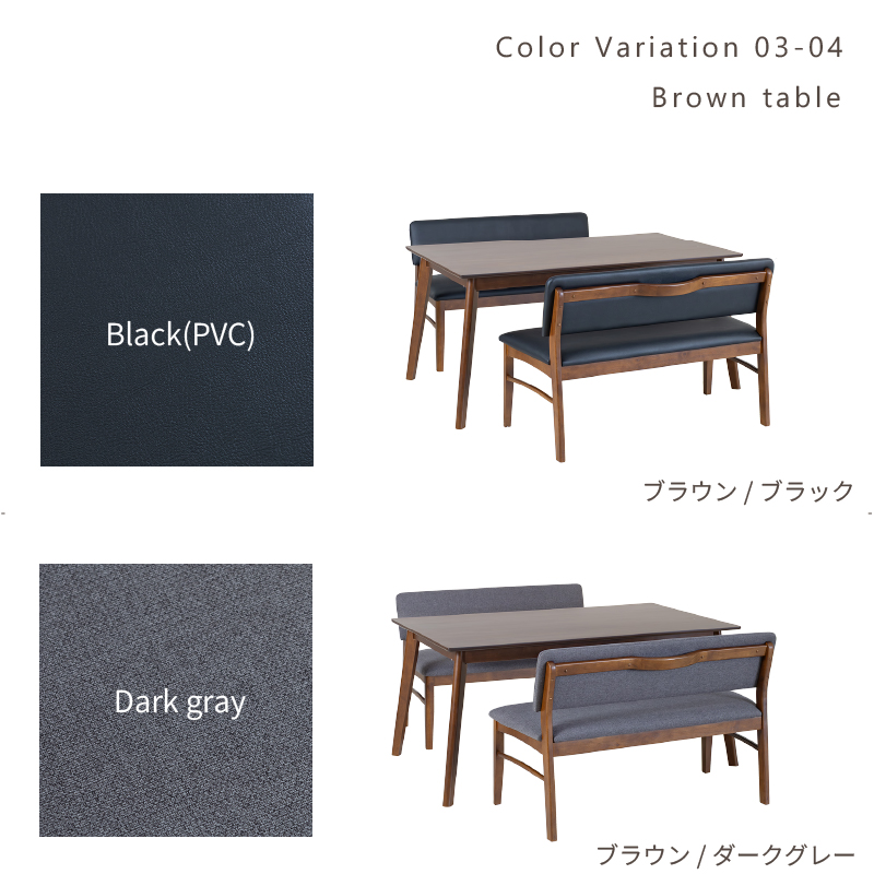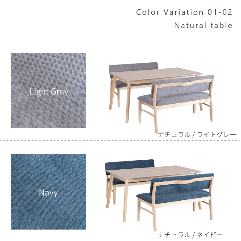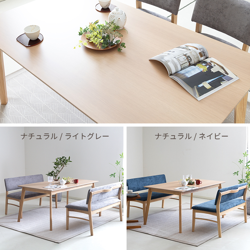 | カラー | ≪ テーブル ≫ ナチュラル , ブラウン ≪ ベンチソファ ≫ ナチュラル / ライトグレー ナチュラル / ネイビー ブラウン / ブラック ブラウン / ダークグレー |