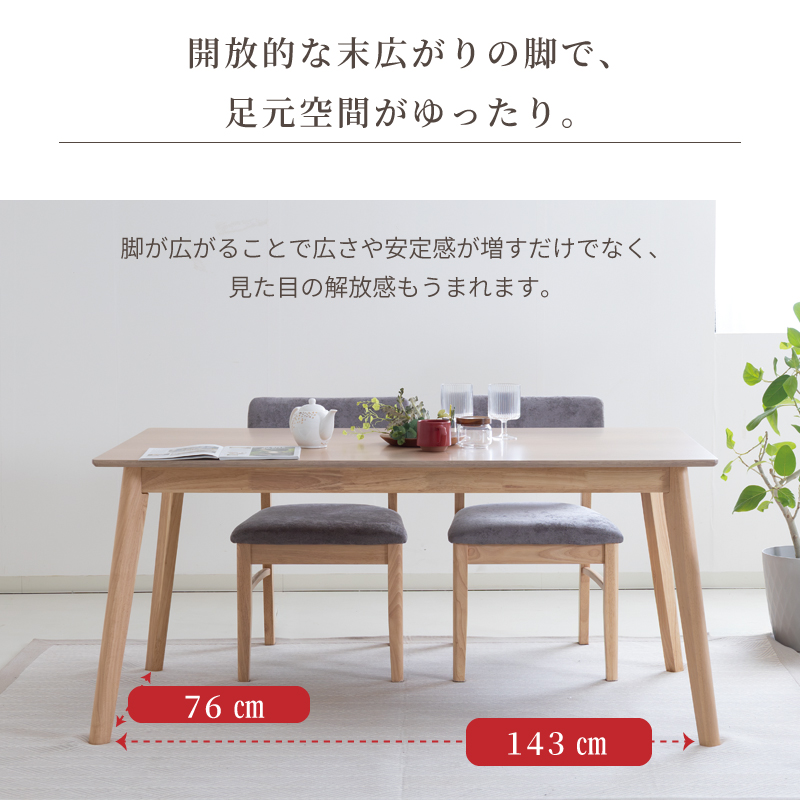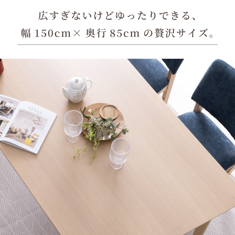 | サイズ | ≪ テーブル ≫ 幅150×奥行85×高さ70cm(天厚2cm/脚間143cm) ≪ チェア ≫ 幅51×奥行58×高さ76cm(座面高43cm) |