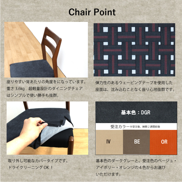 | 材質 | 木部:ラバーウッド カバー:ファブリック(布) 塗装:ウレタン |