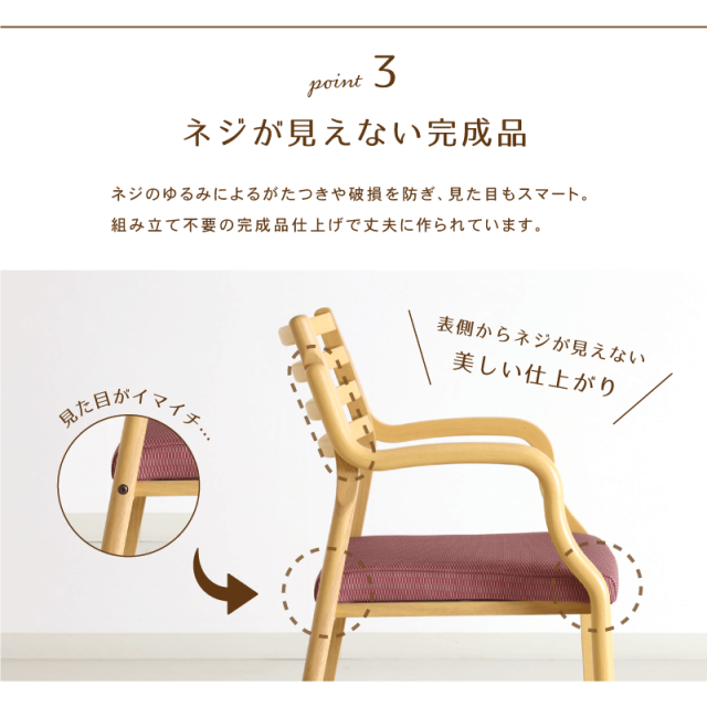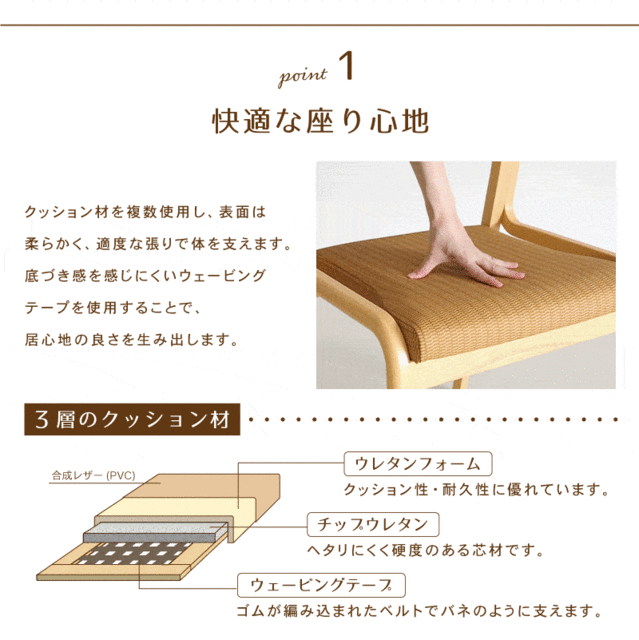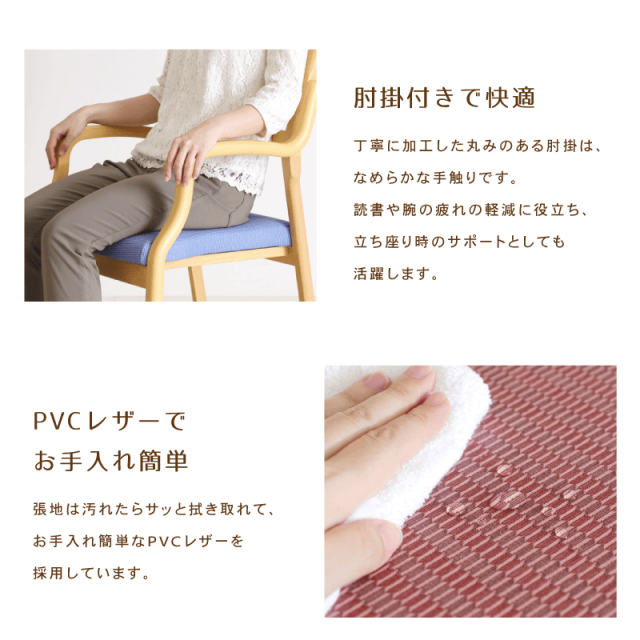 | 材質 | 木部:ラバーウッド / 張地:PVC(合皮) / 塗装:ウレタン |