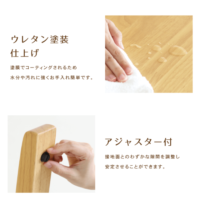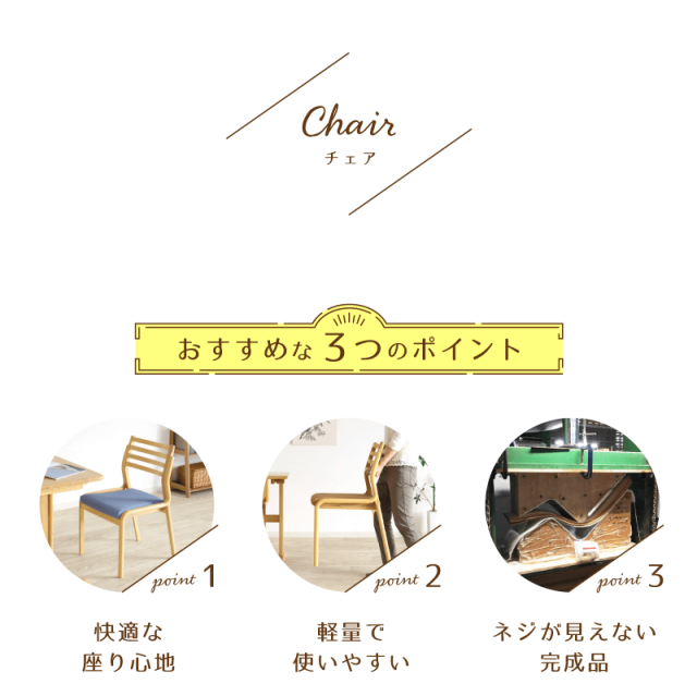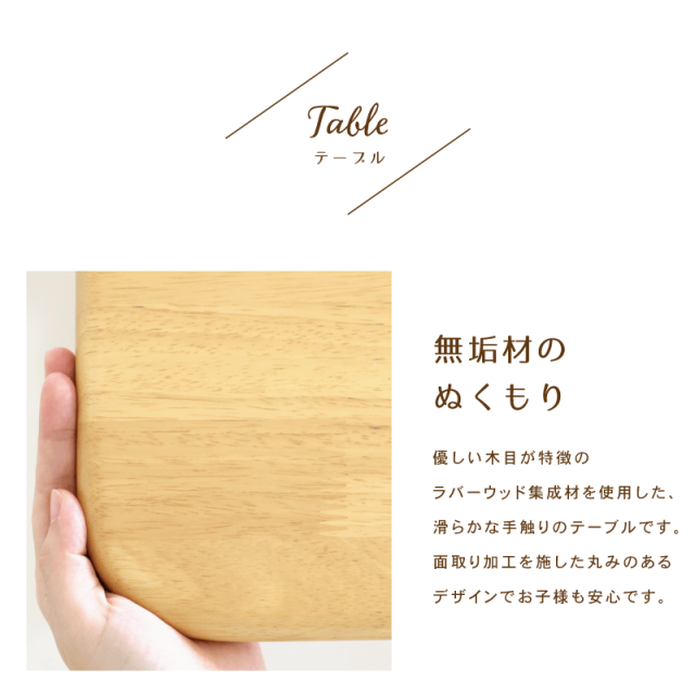| 材質 | ≪ テーブル ≫ 天板:ラバーウッド , 脚:ラバーウッド / 塗装:ウレタン ≪ チェア ≫ 木部:ラバーウッド / 張地:PVC(合皮) / 塗装:ウレタン |