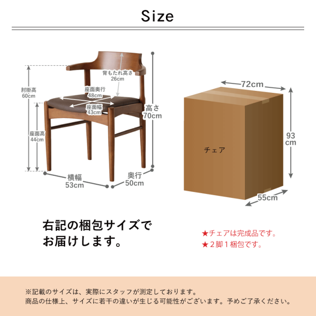 | サイズ | 幅53×奥行50×高さ70cm(座面高44cm/肘高60cm) |