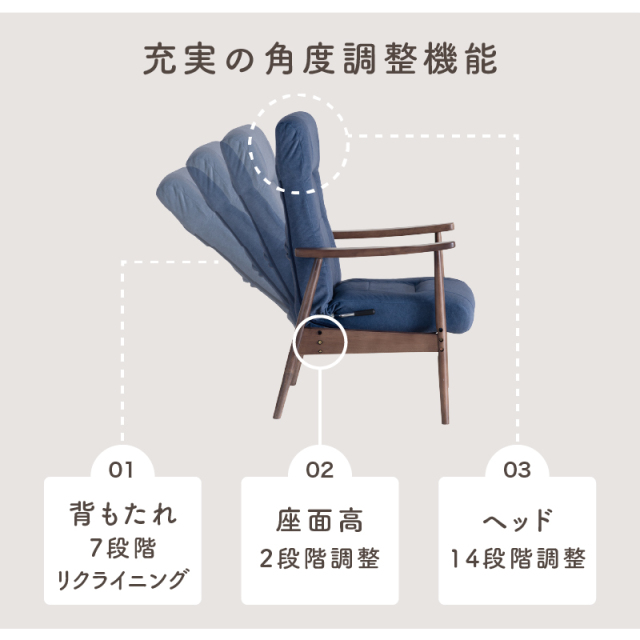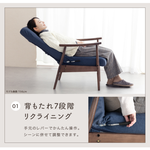 | サイズ | 幅61×奥行65-105×高さ101,104cm (座面高44,47cm / 肘高61.5cm) |