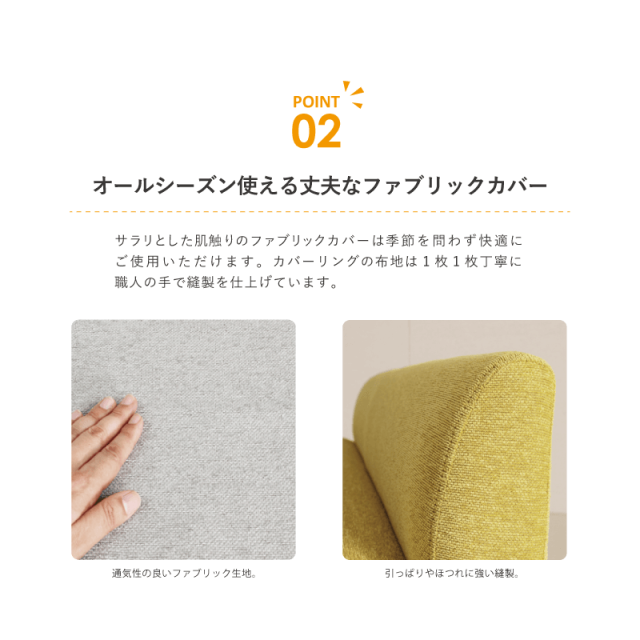 | 材質 | 木部:ラバーウッド 張地:PVC(合皮) カバー:ファブリック(布) 塗装:ウレタン |