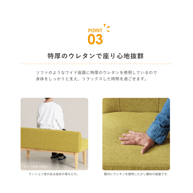ベンチの後ろ側にテレビかあるのでテーブルより背もたれが低いものを探していたのですが、yarseベンチがまさにピッタリでした。 20cm程の高さでもあるとないとでは大違いで、もっと高さが欲しい時はクッションを使用すれば大丈夫です。 組み立てが不要ですしカバーの取り付けがとても簡単なので、高齢女性一人でも数分で完了出来ます。 座面が硬めで姿勢を保つことができるのも良かったです。 脚も4本独立したものではなくしっかりした作りなので、長期間使用してもがたつくことはないように思います。 大満足です。 ありがとうございました。 |