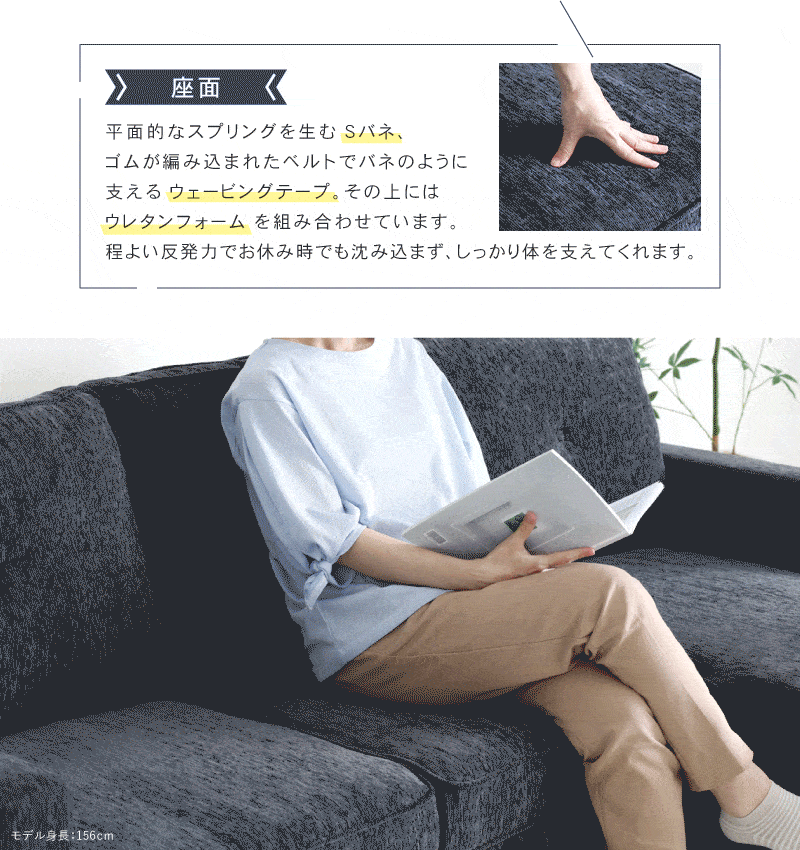 | 材質 | 木部:天然木 張地:ファブリック(布) 内部:Sバネ , ウレタンフォーム |