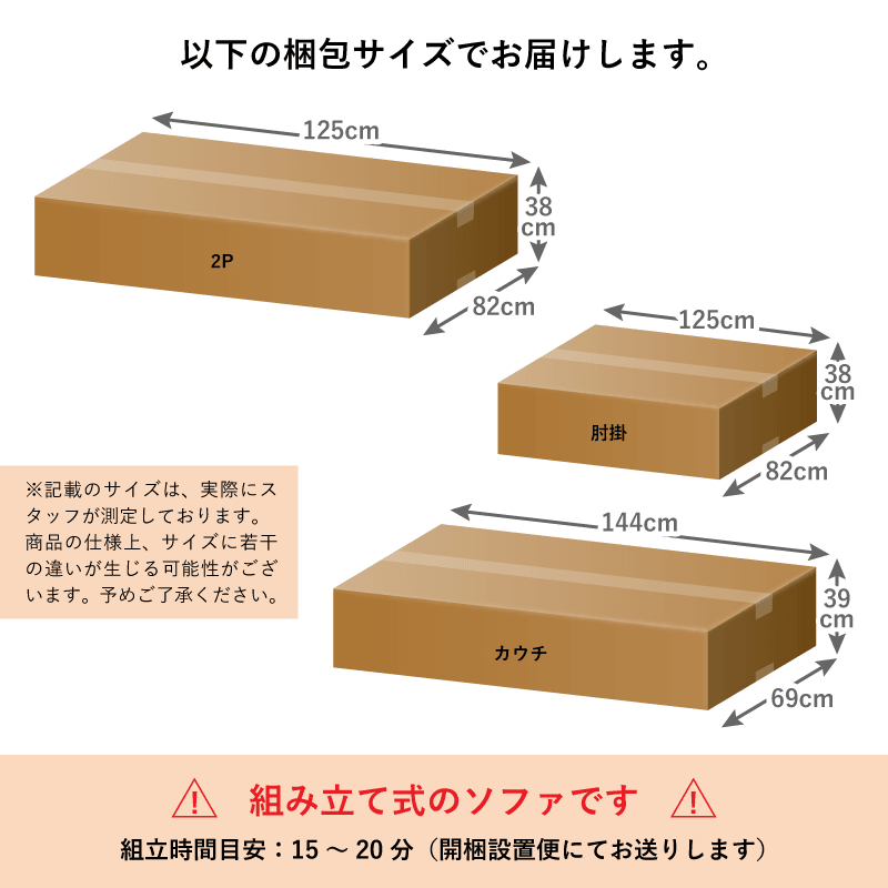 お客様組立て 3梱包(2P・カウチ・肘掛)でお届けします ※当商品は業務販売品の為、在庫確認後納期をお知らせします。 ※ご注文のタイミングによっては在庫欠品および完売の可能性がございます。 ※当商品は業務販売商品の為、初期不良以外は保証対象外となっております。 ※当商品は業務販売商品の為、木板・張地サンプルのご用意が出来ません。 ※モニター環境により、発色・素材感に差異が生じる場合がございます。 |