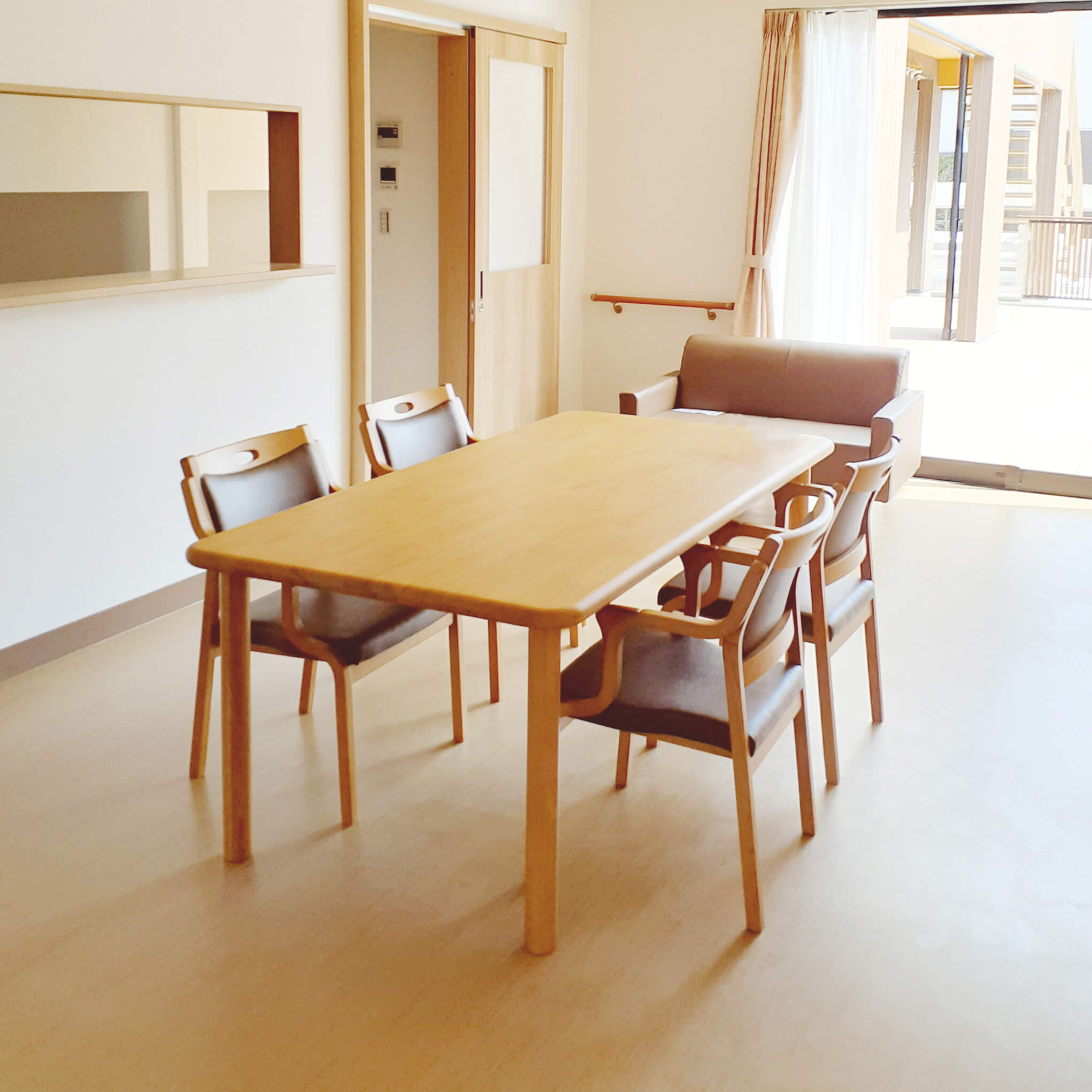 介護施設のテーブルは、食事介助や車椅子から椅子、椅子から車椅子への移乗の際などで利用します。