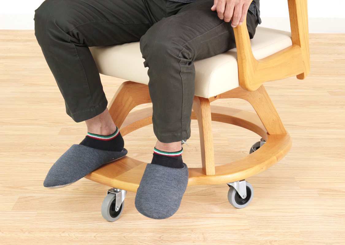 もし、座面が高く足がブラブラしてしまう状態だと、足首やふくらはぎの筋肉が緊張したり、バランスを保ちにくく変な力が入ったりして、疲れやすくなります。小柄な方の場合、一般的に販売されているダイニングチェアなどが体格に合わず、足の裏が浮いてしまうことがあります。フットレストがあると、疲労感が少なくなり、姿勢も保ちやすいでしょう。