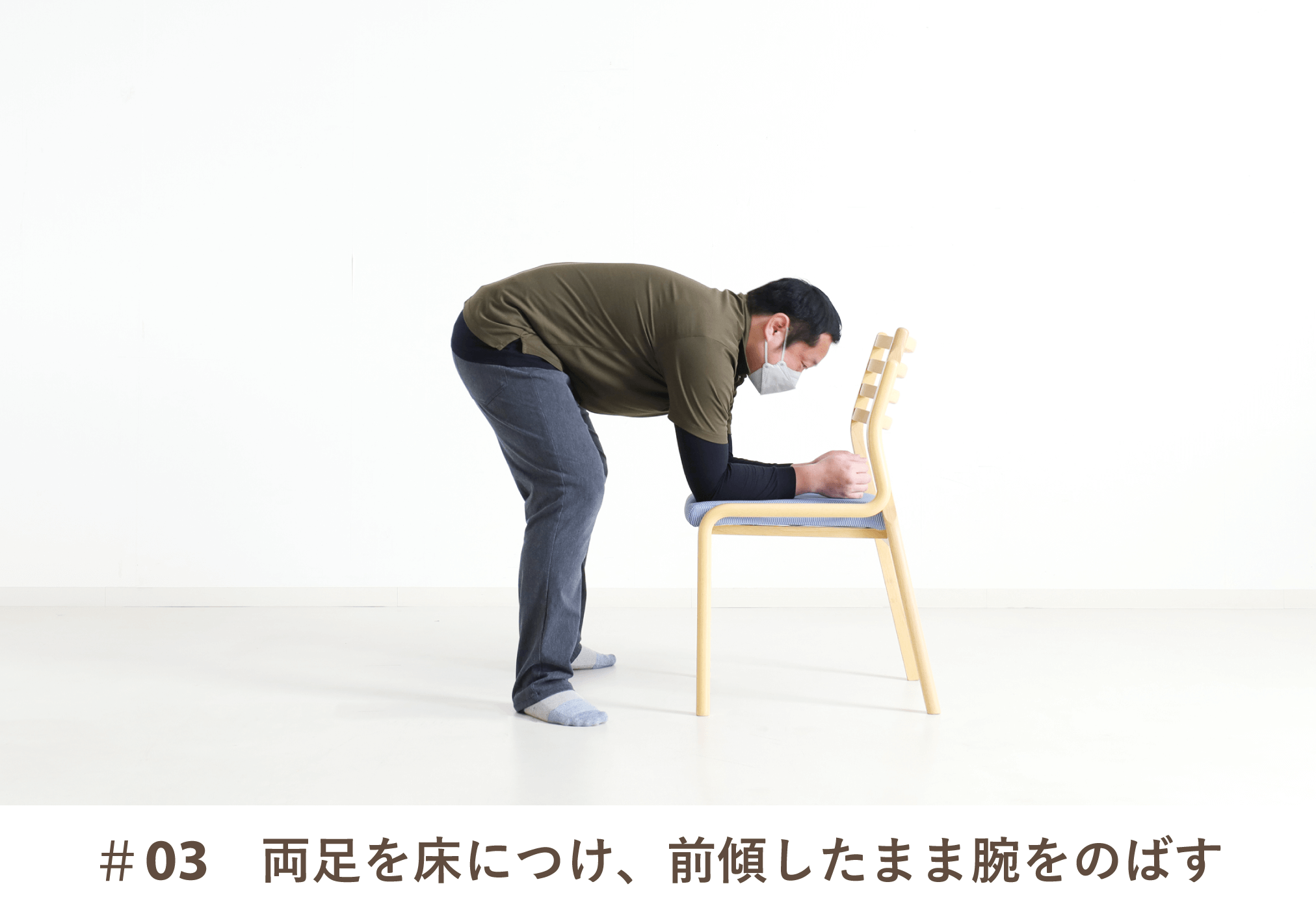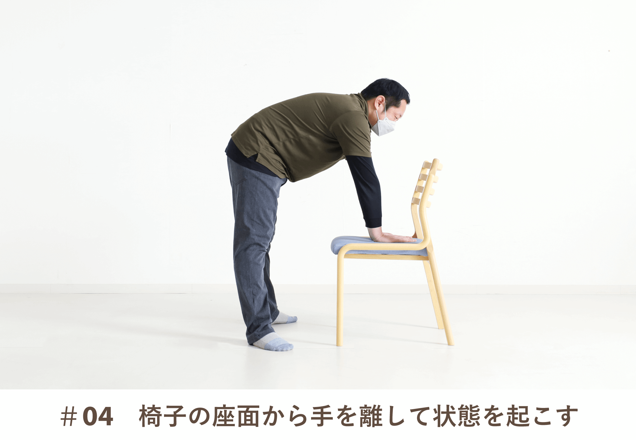 脚力にすべて頼るよりも、椅子を使うと無理なく床から立ち上がる動作がスムーズに行いやすくなります。