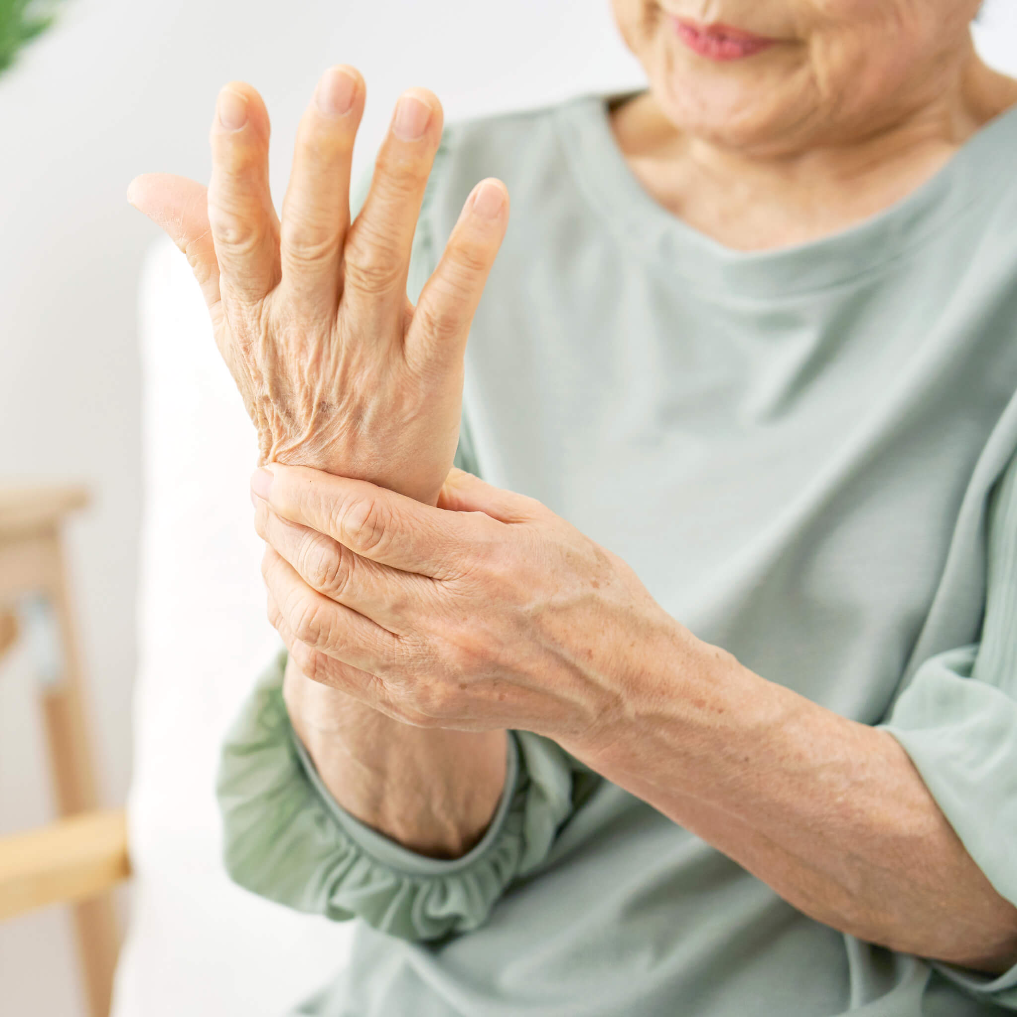 関節への負担を軽減させるために、立ち座りの際はテーブルやひじ掛けを活用しましょう。指先でつかむような細いタイプではなく、腕で体を支え手首の関節の負担を軽減できる、しっかりとしたひじ掛けが便利です。