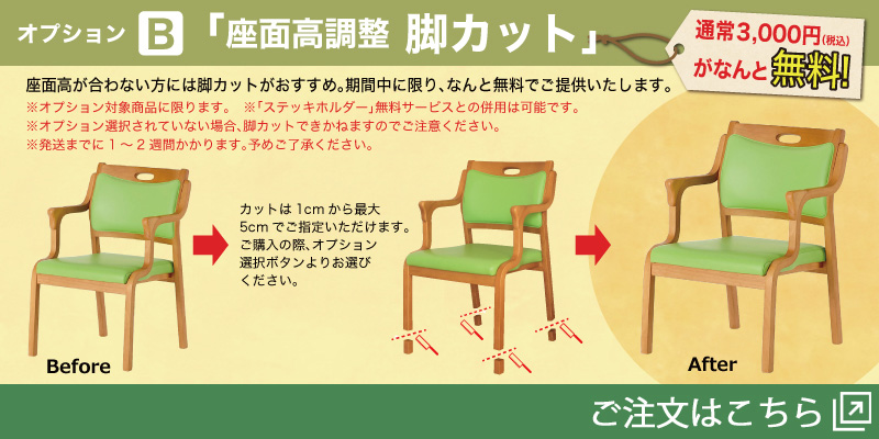 無垢材を丁寧に加工した『肘掛け付き』で立ち座りをしっかりとサポート